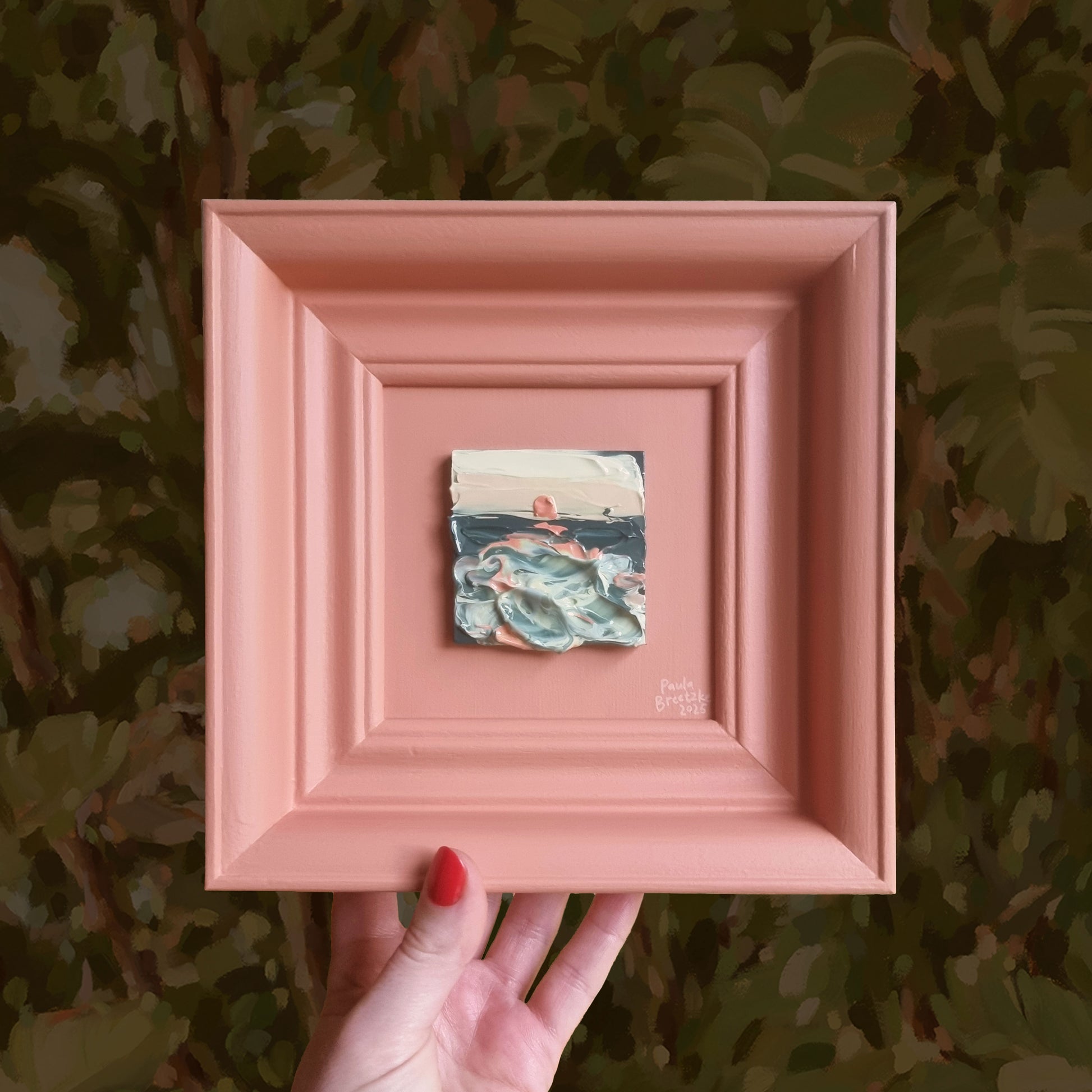 Painted upcycled wooden frame, 220 x 220mm